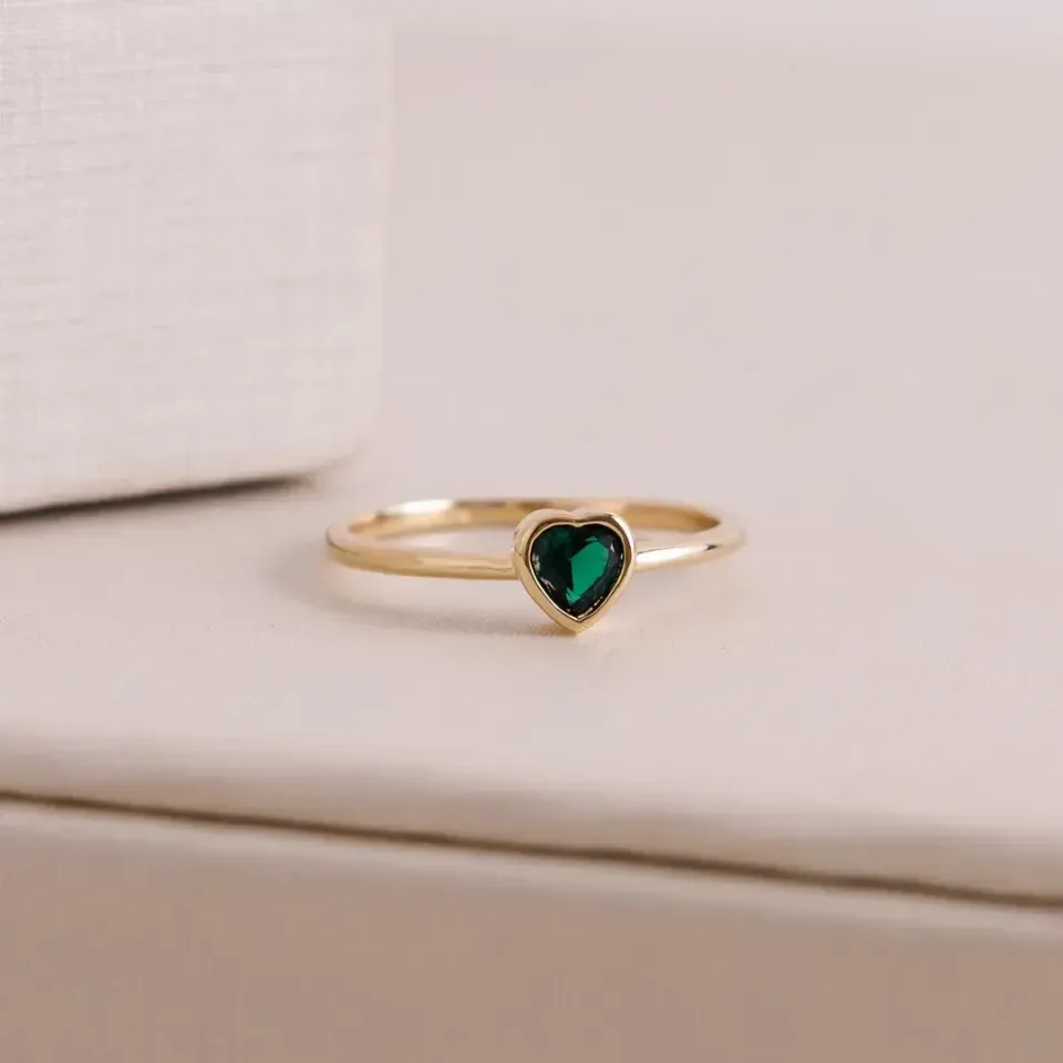ANEL CORAÇÃO PEDRA VERDE BANHADO A OURO 18KConfira opiniões e avaliações de clientes!