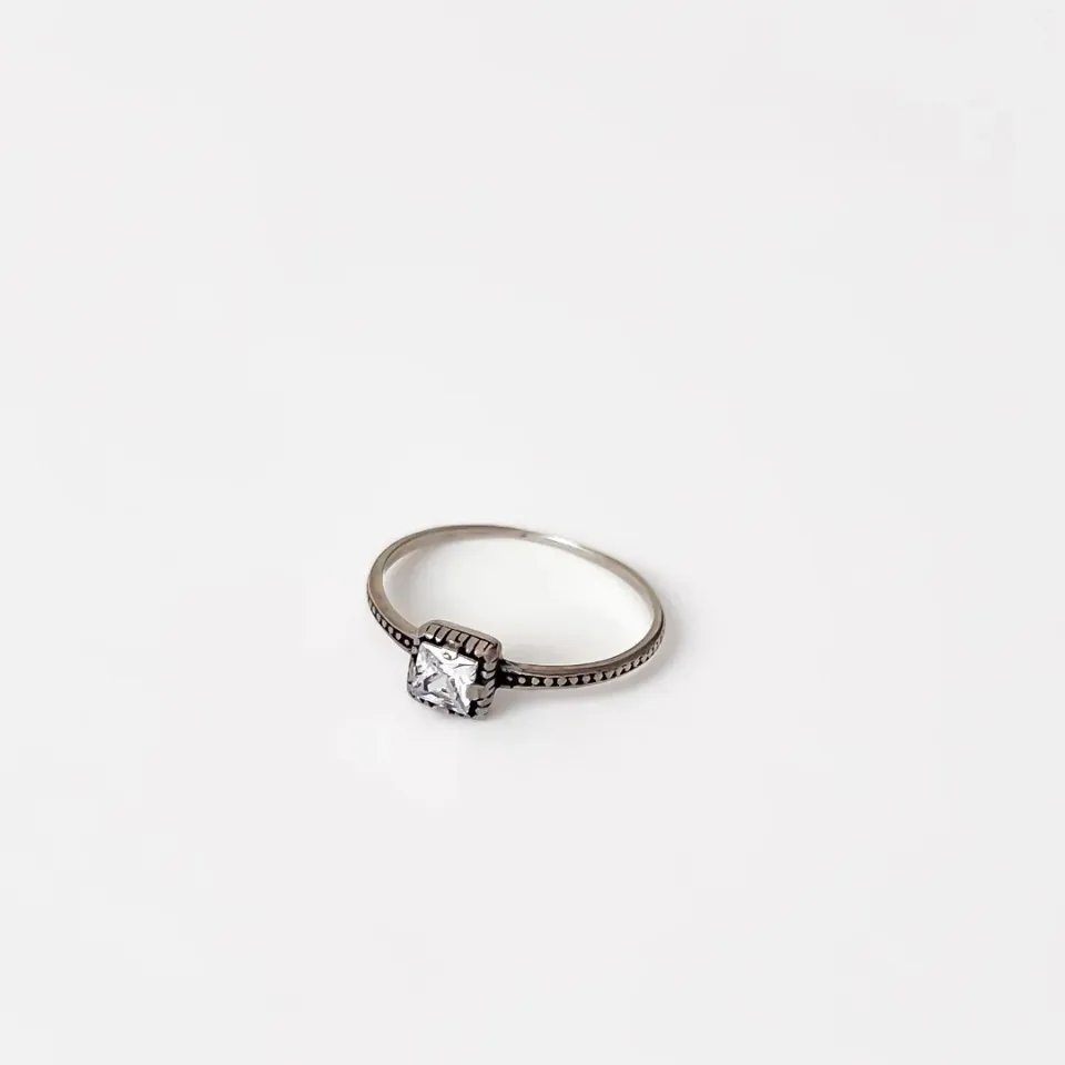 Descubra a beleza única do nosso anel de prata 925 envelhecida com uma zircônia quadrada. Uma peça que combina o charme rústico da prata envelhecida com o brilho sofisticado de uma zircônia, perfeita para quem busca um acessório autêntico e elegante.