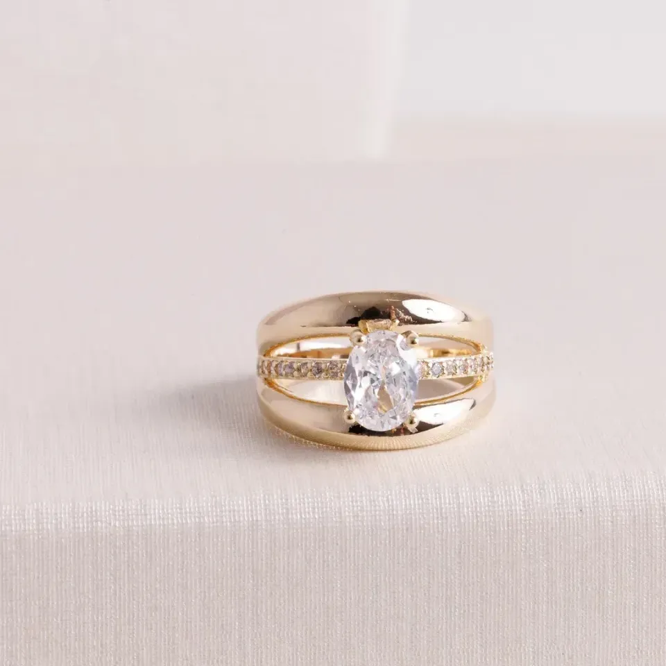ANEL TRÊS FAIXAS COM ZIRCONIA BANHADO A OURO 18KConfira opiniões e avaliações de clientes!