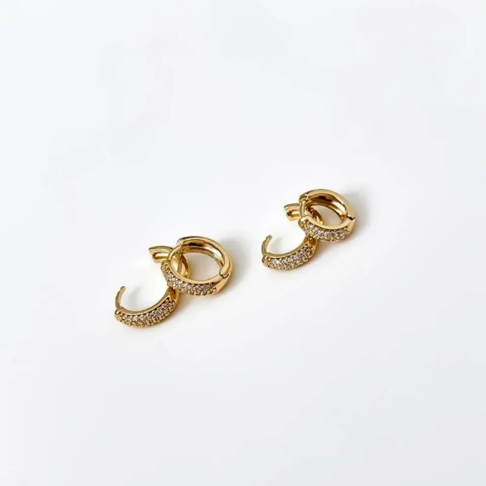 Com um design moderno de argolas duplas e cravação de zircônias que capturam a luz com suavidade, ele simboliza a união de dois brilhos que se complementam.