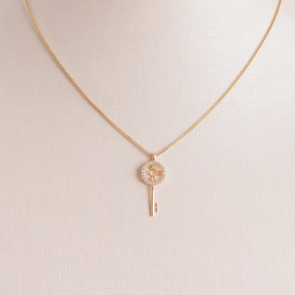 COLAR CHAVE CRAVEJADO BANHADO A OURO 18K AJUSTÁVEL 50CMConfira opiniões e avaliações de clientes!