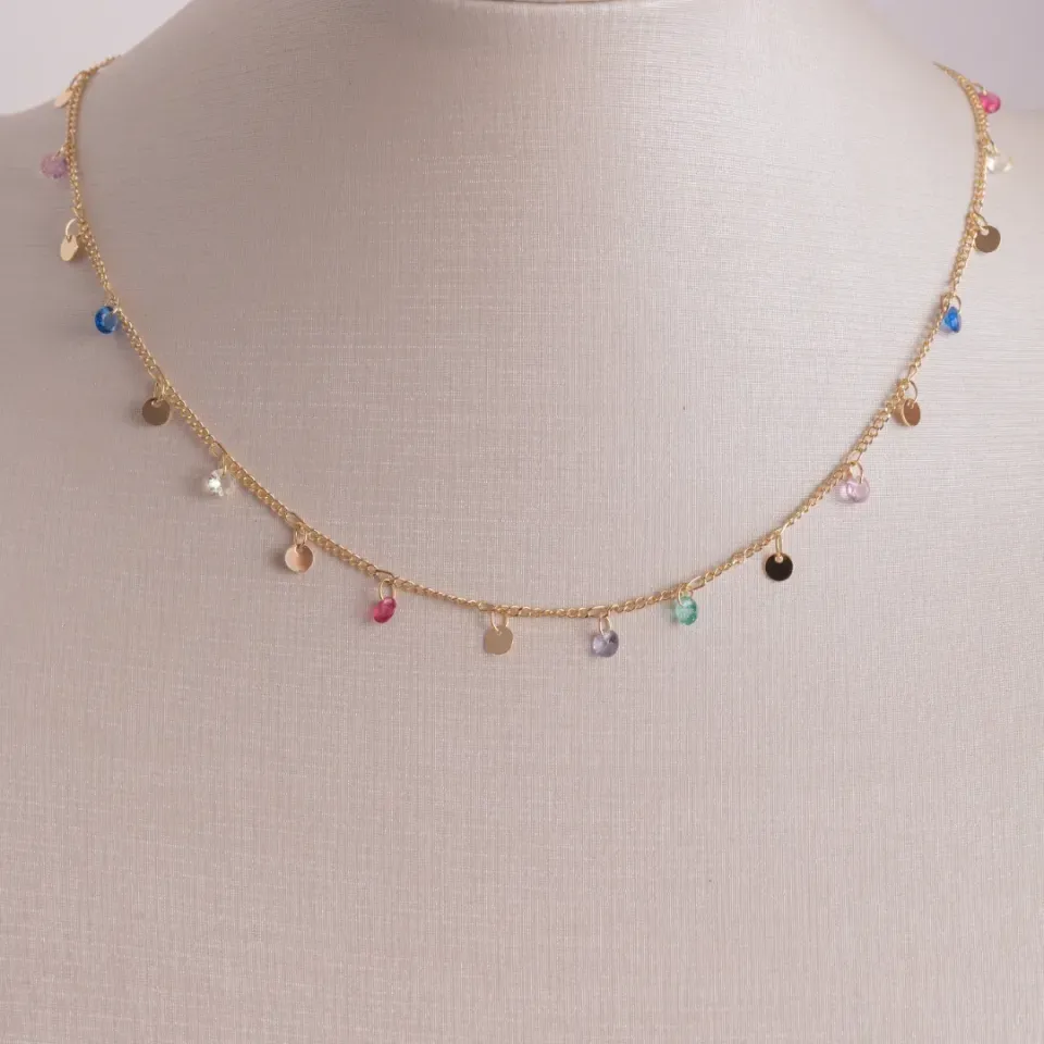 COLAR CHOKER CRISTAIS COM MEDALHINHAS COLORIDAS BANHADO A OURO 18K AJUSTÁVEL 42CMConfira opiniões e avaliações de clientes!