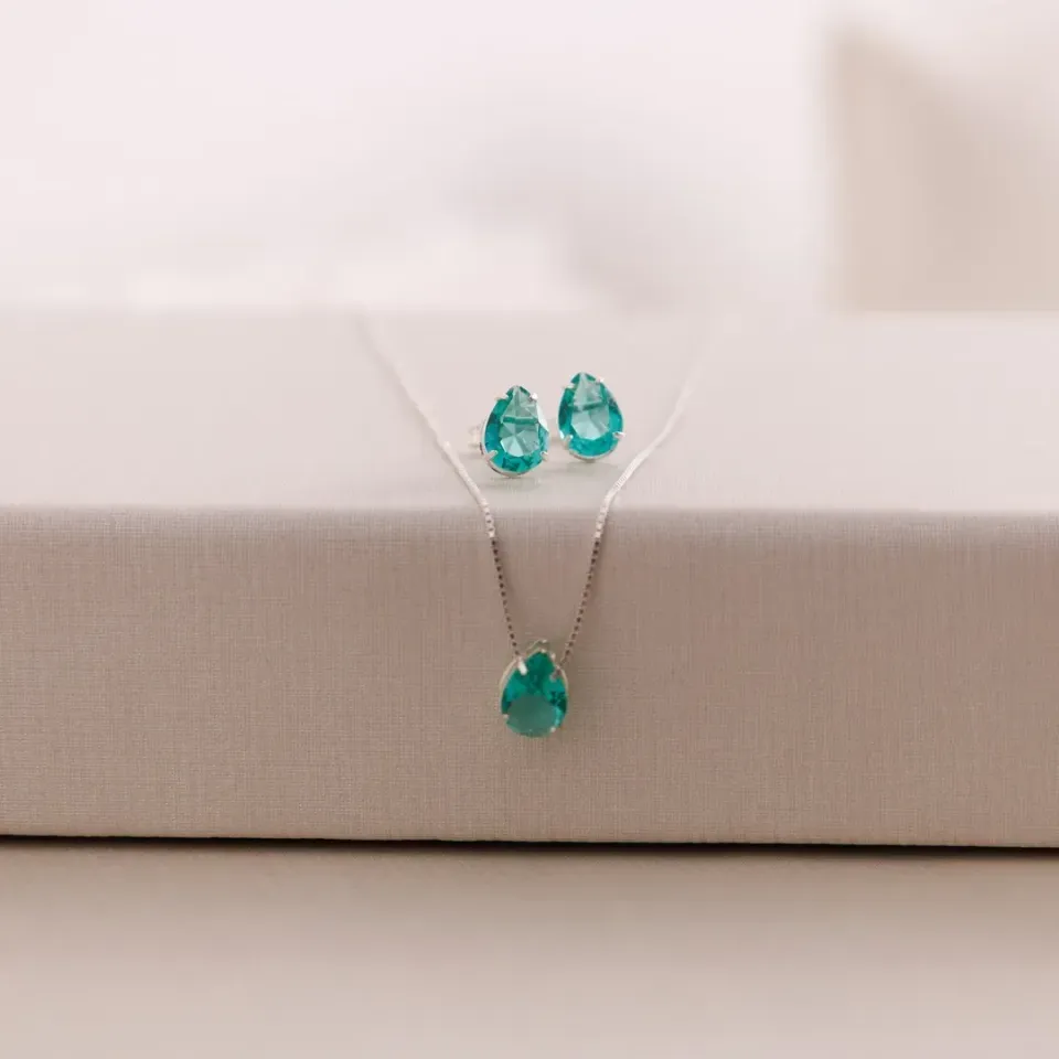 CONJUNTO PRATA 925 GOTA VERDEConfira opiniões e avaliações de clientes!