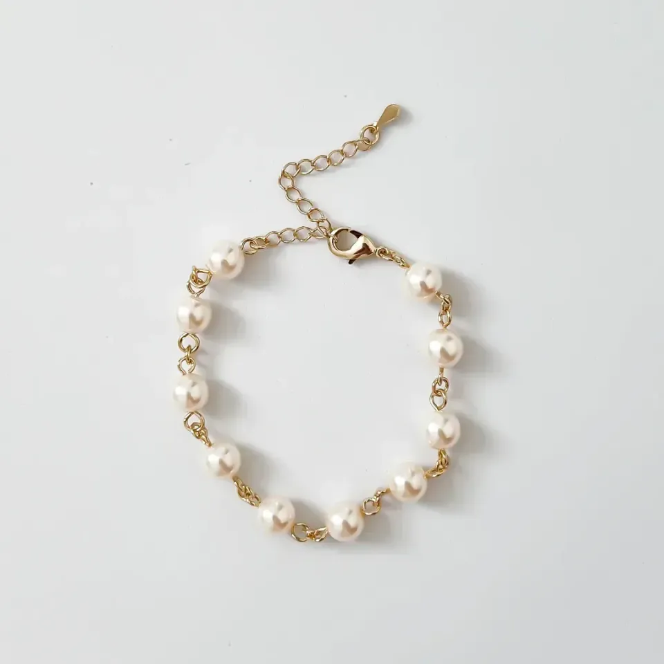 Uma peça delicada e elegante que combina a beleza atemporal das pérolas com o brilho sofisticado do ouro 18k. Esta pulseira é perfeita para quem busca um acessório clássico com um toque moderno e luxuoso.